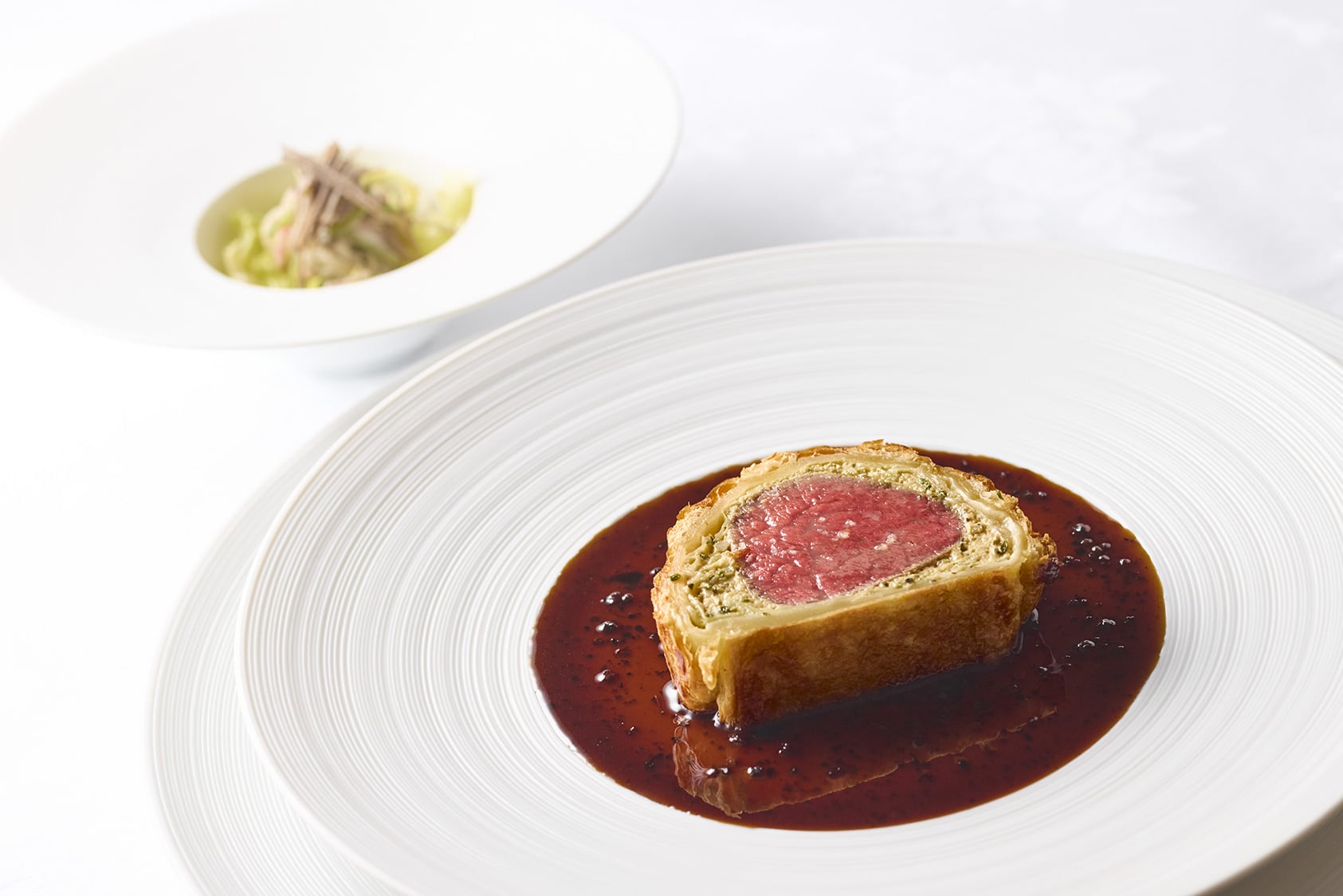 ・最上コースは、魚料理と牛肉料理の贅沢なハーモニー