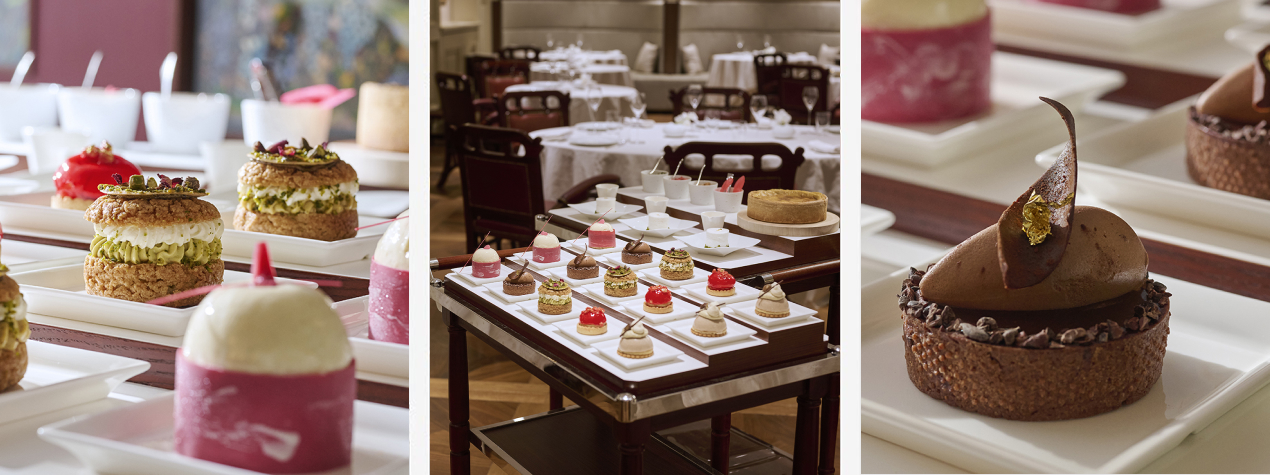 食事の締めくくりを華やかに彩るパティシエの最新のクリエイションを、心ゆくまでご堪能ください。