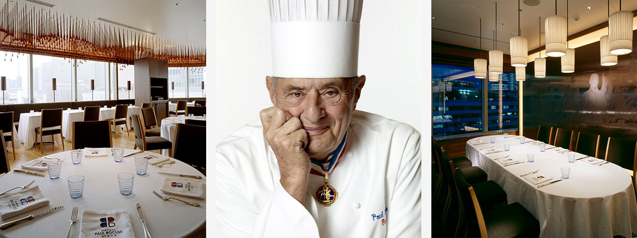フランス料理界の巨匠ポール・ボキューズ。名店「ラ・ピラミッド」で伝説の料理人フェルナン・ポワンに師事した後、実家のレストランを継ぎ、1961年にフランスの最高勲章であるM.O.F.(国家最優秀職人章)を料理人として初めて受章。レストラン「ポール・ボキューズ」は1965年に三つ星を獲得し、世界最高峰のレストランとしてその名を馳せます。現在は、総料理長ジル・レナルト氏が後継となり、ポール・ボキューズのフィロソフィーが守られています。
