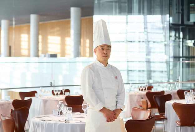 調理専門学校を卒業後、1995年ひらまつへ入社。「レストランひらまつ」をはじめ、各店で研鑽を積み、2007年1月、ポール・ボキューズ氏の海外初出店となる「ブラッスリー ポール・ボキューズ ミュゼ」の開業と共に副料理長に就任し、同年9月より料理長を務める。美術館内に併設されるレストランとして、より多くのお客様にお楽しみいただけるよう展覧会特別メニューの考案などにも積極的に取り組む。