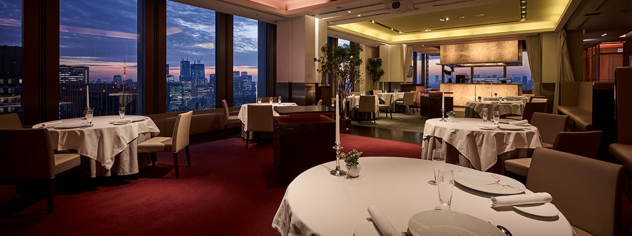 東京タワー、お台場、銀座、新宿の高層ビル群。大きな窓から東京の景観を一望できる洗練された美空間で、五感で味わう美食の世界をお愉しみください。